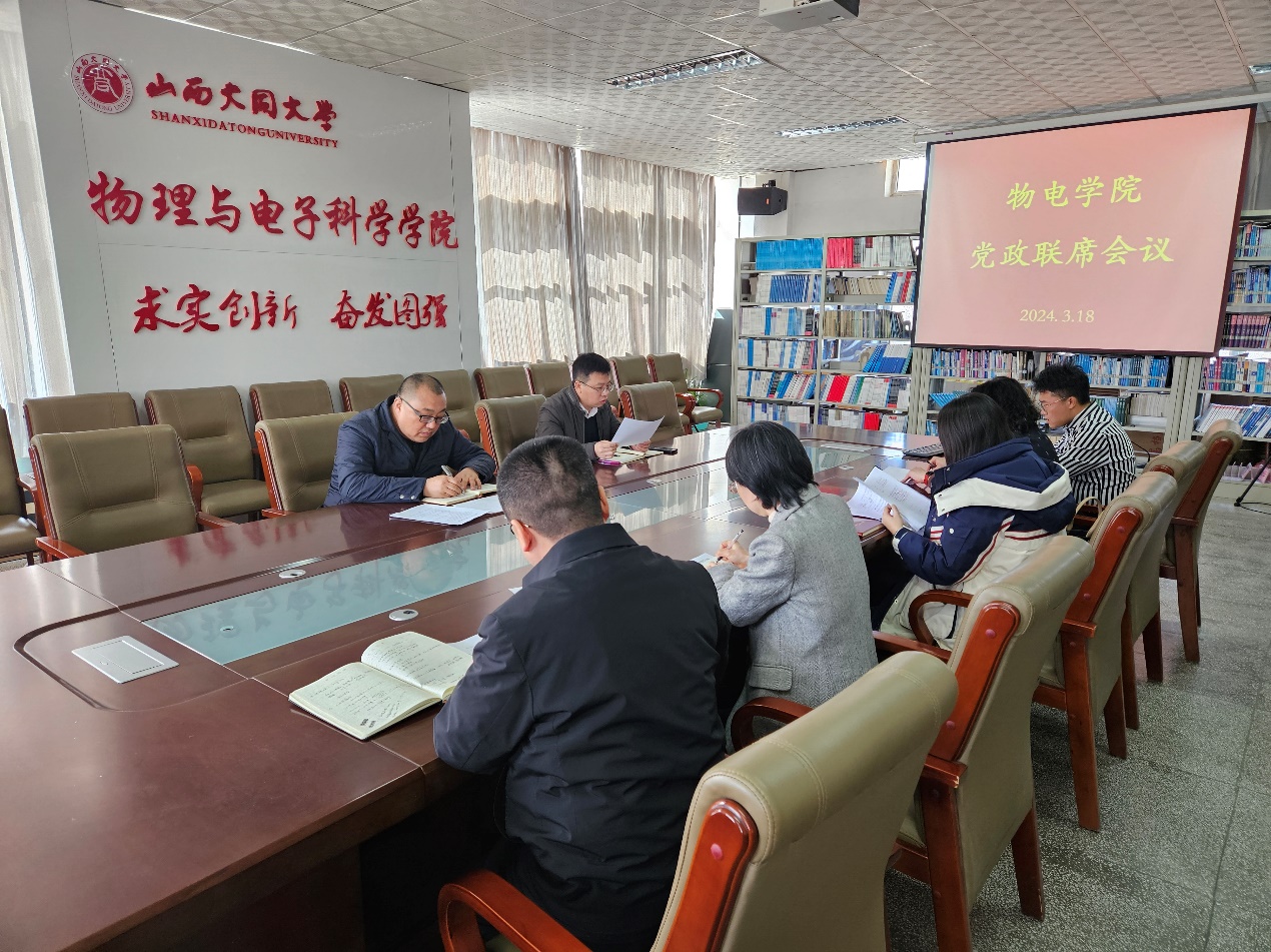 3月18日上午,物理与电子科学学院在明理楼301会议室召开党政联席会议。会议由学院党委副书记、院长李怀繁主持,学院党政班子成员参加会议。