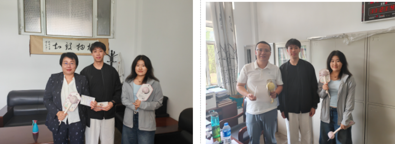 当天,学生代表们分成若干小组,怀着敬意走进学院各办公室。“老师,教师节快乐!感谢您一直以来的悉心教导!”伴随着真诚的问候,同学们将满载祝福的礼物双手递到每一位老师手中。接过礼物的瞬间,老师们的脸上纷纷绽放出欣慰的笑容,指尖轻抚艾草锤感受着这份贴心,目光落在贺卡上满是暖意。“这份礼物太用心了,比任何贵重物品都让人感动,这是今年教师节最特别的惊喜!”一位任教多年的老师动情说道,言语间满是对这份师生情谊的珍视。