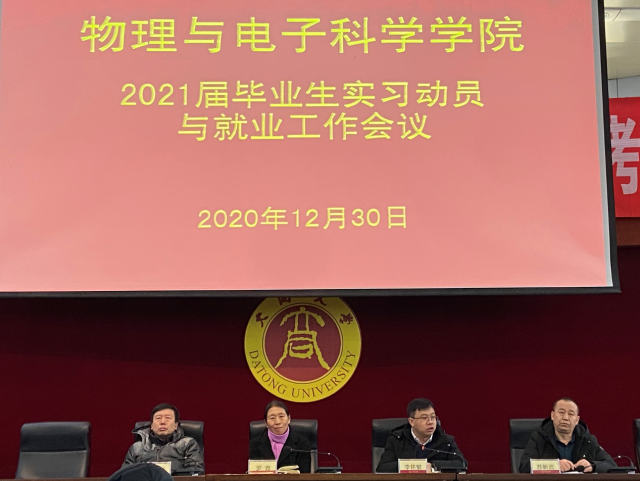 12月29日上午,物理与电子科学学院在科技楼报告厅,召开2021届毕业生实习动员于就业工作会议。会议由李怀繁院长主持,全体院系领导、科级以上干部、毕业班班主任以及17级全体学生参加了会议。