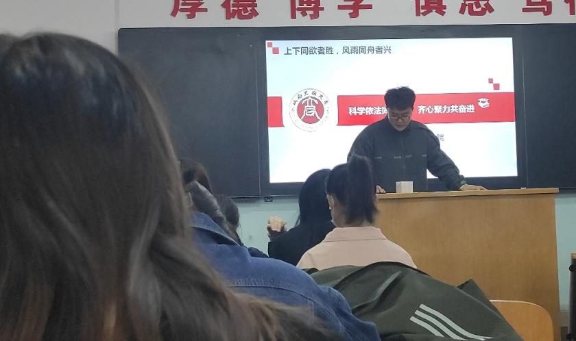 本次学习分为三个主题:“抗疫时不我待,疫起共克时艰”,“学深悟透讲实,构建普法课堂”,“凝聚战役合力,创建法治校园”。首先介绍了新冠肺炎疫情的发展,当前国内外疫情防控形势仍严峻复杂,传播速度快、感染风险高的奥密克戎变异毒株在国内多点散发,防输入防反弹的压力增大。特别是最近山西省属高校学生和快递从业人员感染,我省疫情形势严峻。疫情期间,我国发生了多起违反法律法规、学校疫情防控规定的事件,产生了极大的负面影响。为凝聚抗疫合力,科学依法抗疫,增强全校师生在疫情防控工作中的法治意识,用一些违反疫情防控和学校相关疫情规定的典型案例警示师生。如:封校期间学生私自翻墙外出、伪造行程码、恶意篡改政府网上疫情通告等不良、违法行为,提醒师生要严格遵守法律法规和疫情防控相关规定。