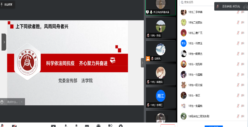 按照山西大同大学党委宣传部《关于基层党委开展抗疫普法专题宣讲的通知》的文件要求,在全面封校抗击疫情前提下,物电学院党委统筹安排,全院六个党支部线上线下共同进行开展了“科学依法同抗疫,齐心聚力共奋进”普法抗疫主题党日活动。