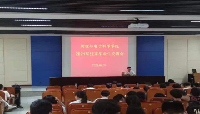 6月26日上午,物电学院在善美楼报告厅举办了“2021届优秀毕业生交流会”。此次交流会的成功召开,有助于引导广大低年级学生树立正确的学习观、就业观,提升自身考研经验与职业素质,增强就业竞争力,为今后的进一步发展打下坚实基础,同时也对优良校风的培育和浓厚学风的营造产生了积极影响。